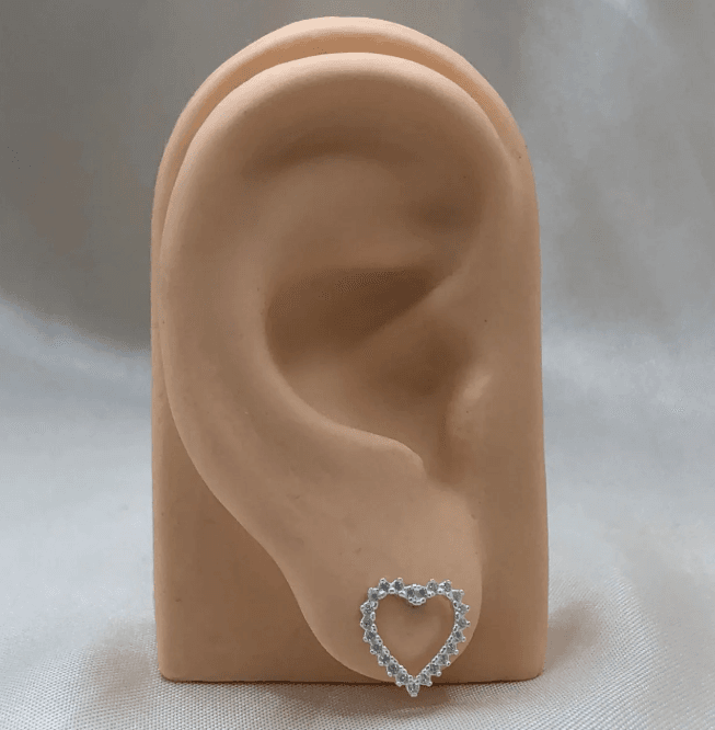 Os Brincos Coração Vazado Cravejado com Detalhes são acessórios indispensáveis para qualquer look e ocasião. São peças delicadas, feitas com prata 925 de alta qualidade e material hipoalergênico.