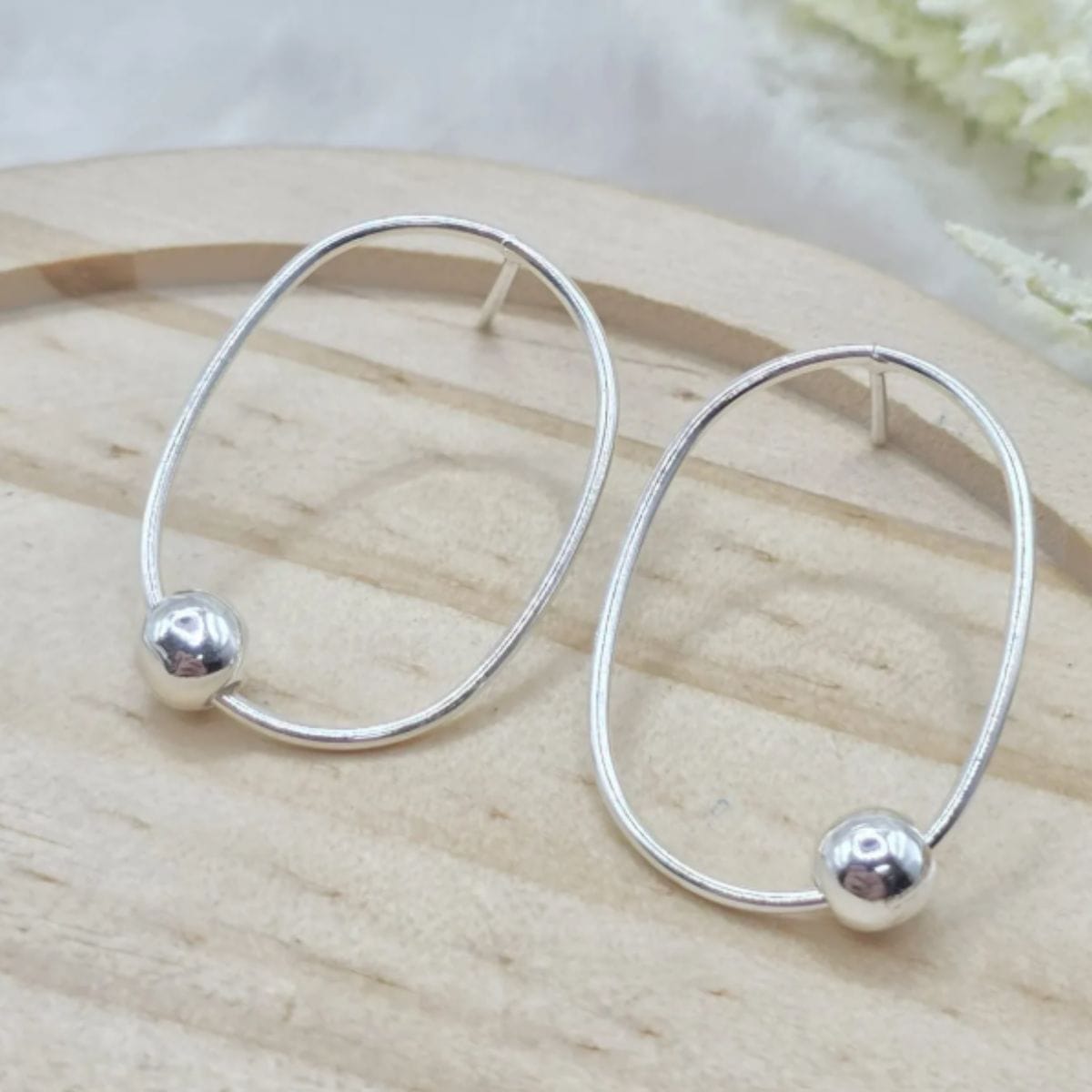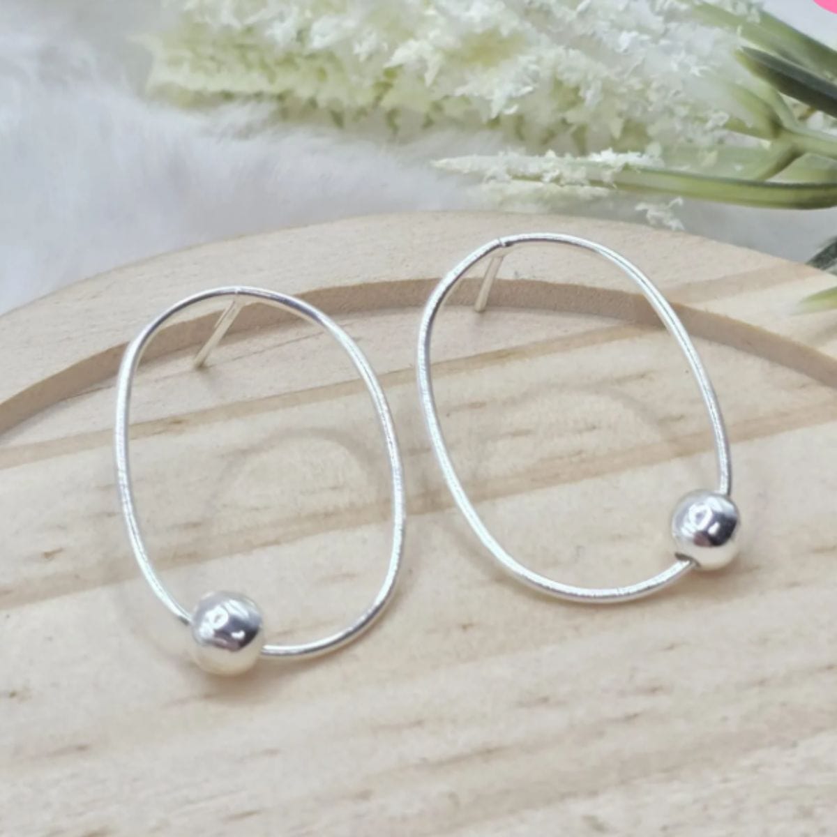 Brinco de prata 925 oval com detalhe bola