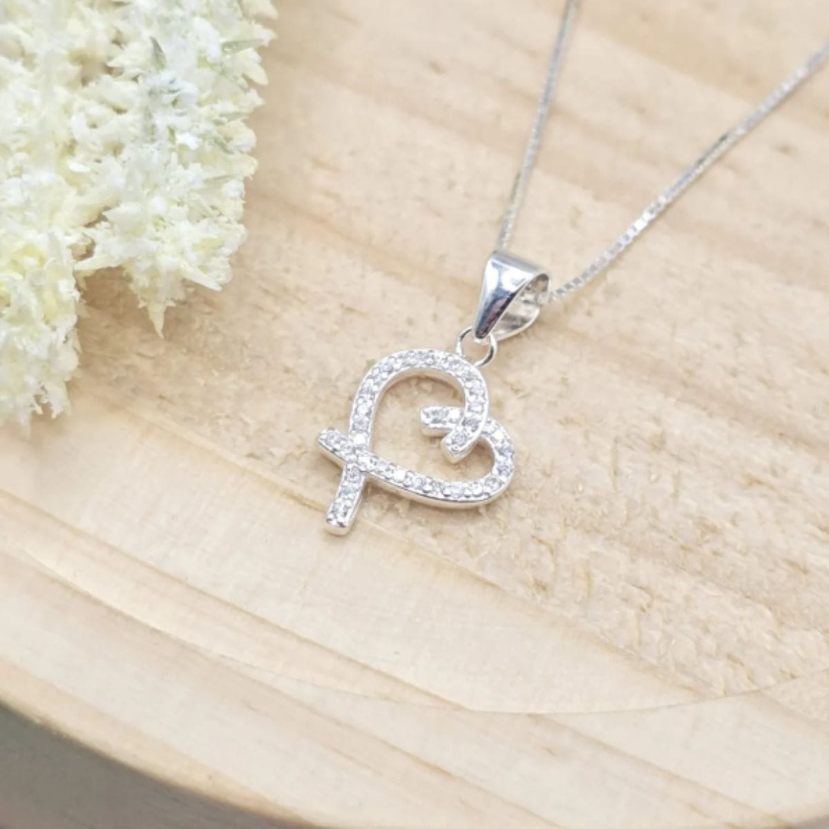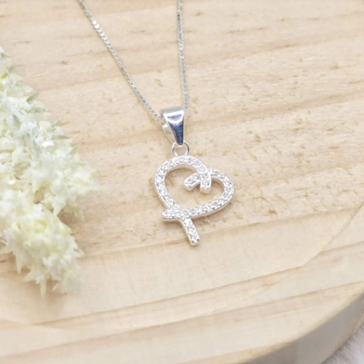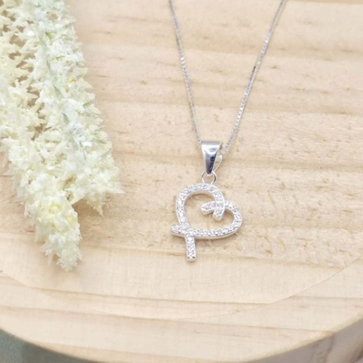 Corrente de prata 925 com pingente coração vazado cravejado