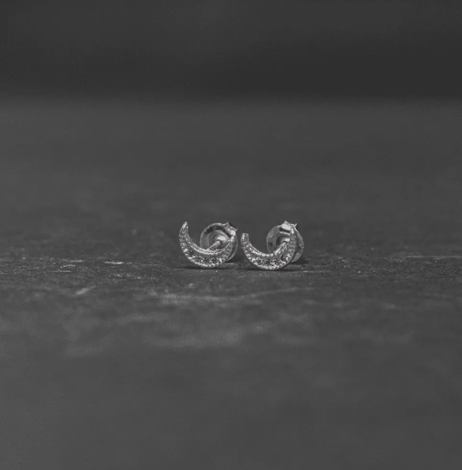 Brinco de prata 925 meia lua cravejado