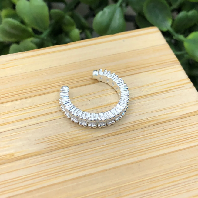 Com brilho e elegância na medida certa, esse piercing fake de argola possui cravação completa em zircônias e detalhes que dão um acabamento refinado à peça. Perfeito para quem quer montar um mix de orelha moderno e estiloso — sem precisar de furo! Uma joia prática, confortável e cheia de charme.