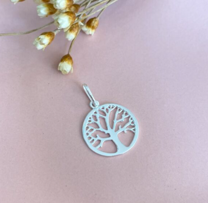 Pingente joia em prata 925 com medalha de árvore da vida vazada .