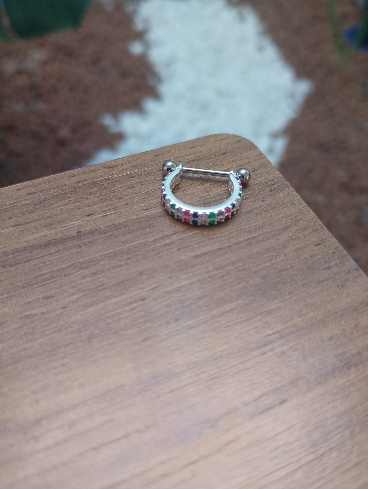 O piercing de prata 925 com dois filetes cravejados é uma peça moderna e sofisticada, desenvolvida especialmente para a região da conch. Seu design alongado com zircônias garante brilho intenso e elegante, transformando o visual em uma composição cheia de estilo.