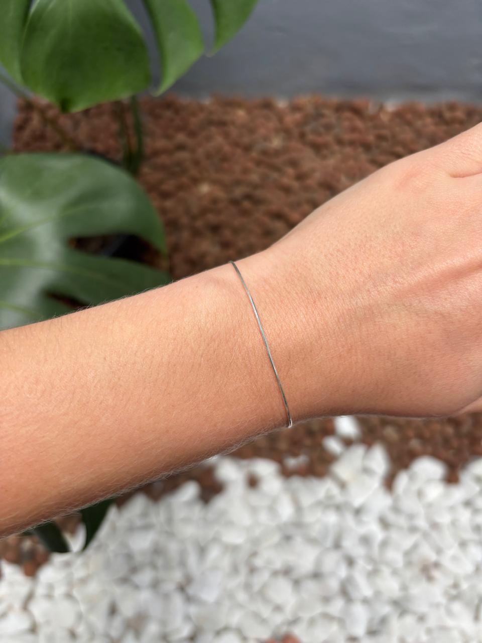 Clássica e sofisticada, essa pulseira no estilo rabo de rato é uma joia versátil, ideal para quem busca um visual discreto com acabamento elegante. Com fio 20, ela tem uma espessura delicada que valoriza o brilho natural da prata, sendo perfeita para usar sozinha ou combinar com outras pulseiras em sobreposição.