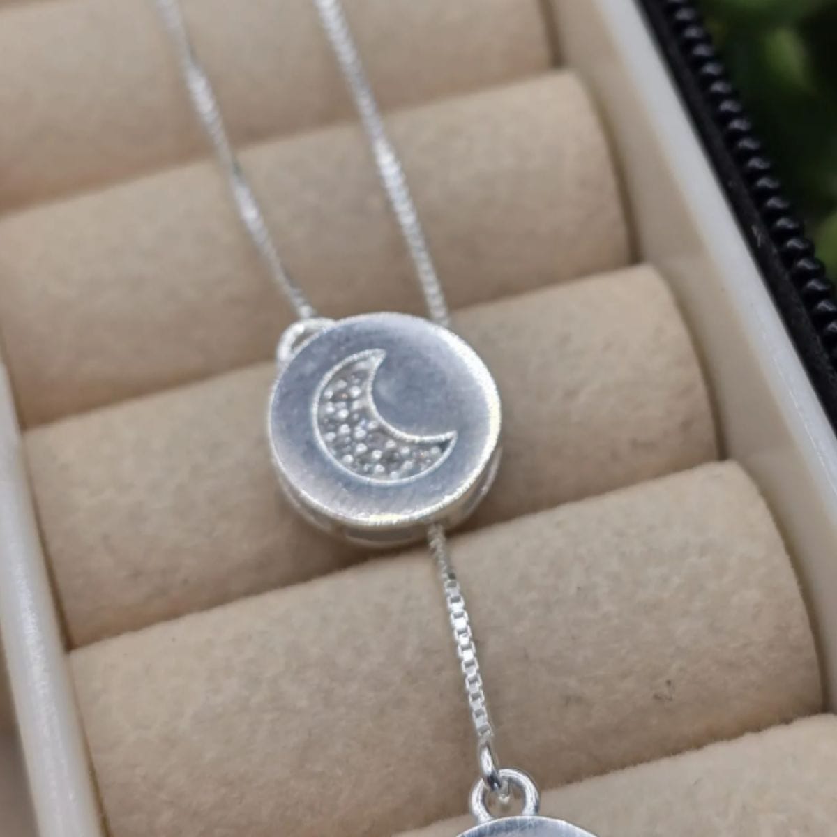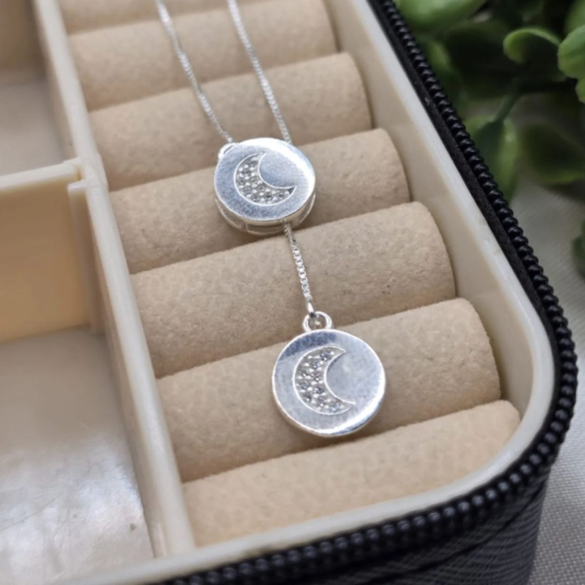 Moderna e delicada, essa gravatinha em prata 925 apresenta um pingente em formato de círculo com lua cravejada, simbolizando mistério, feminilidade e conexão com a intuição. O brilho sutil das pedras realça o design minimalista, trazendo elegância na medida certa.