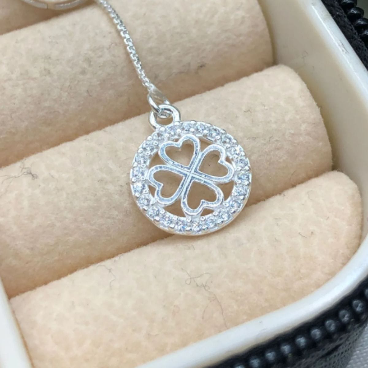 Gravatinha de prata 925 circulo com trevo cravejado