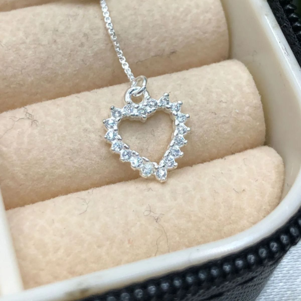Gravatinha de prata 925 coração vazado cravejado