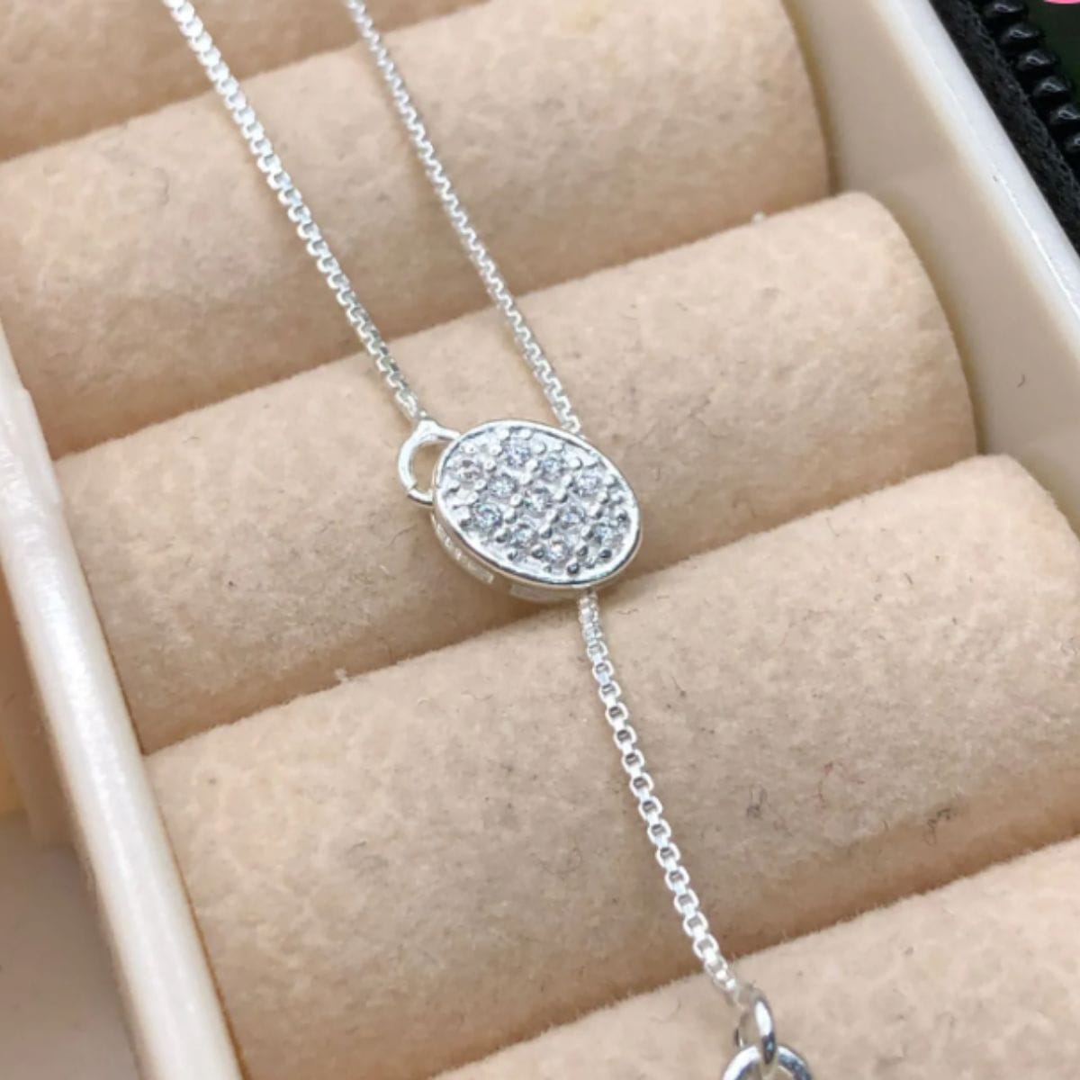 A gravatinha de prata 925 com pingente oval cravejado é uma joia delicada e elegante, perfeita para quem busca um acessório sofisticado e versátil. Seu design minimalista valoriza o formato oval, enquanto os detalhes cravejados adicionam um brilho sutil e refinado, ideal para compor looks do dia a dia ou ocasiões especiais. Leve e moderna, essa peça traz equilíbrio entre discrição e destaque, tornando-se um clássico indispensável no porta-joias.