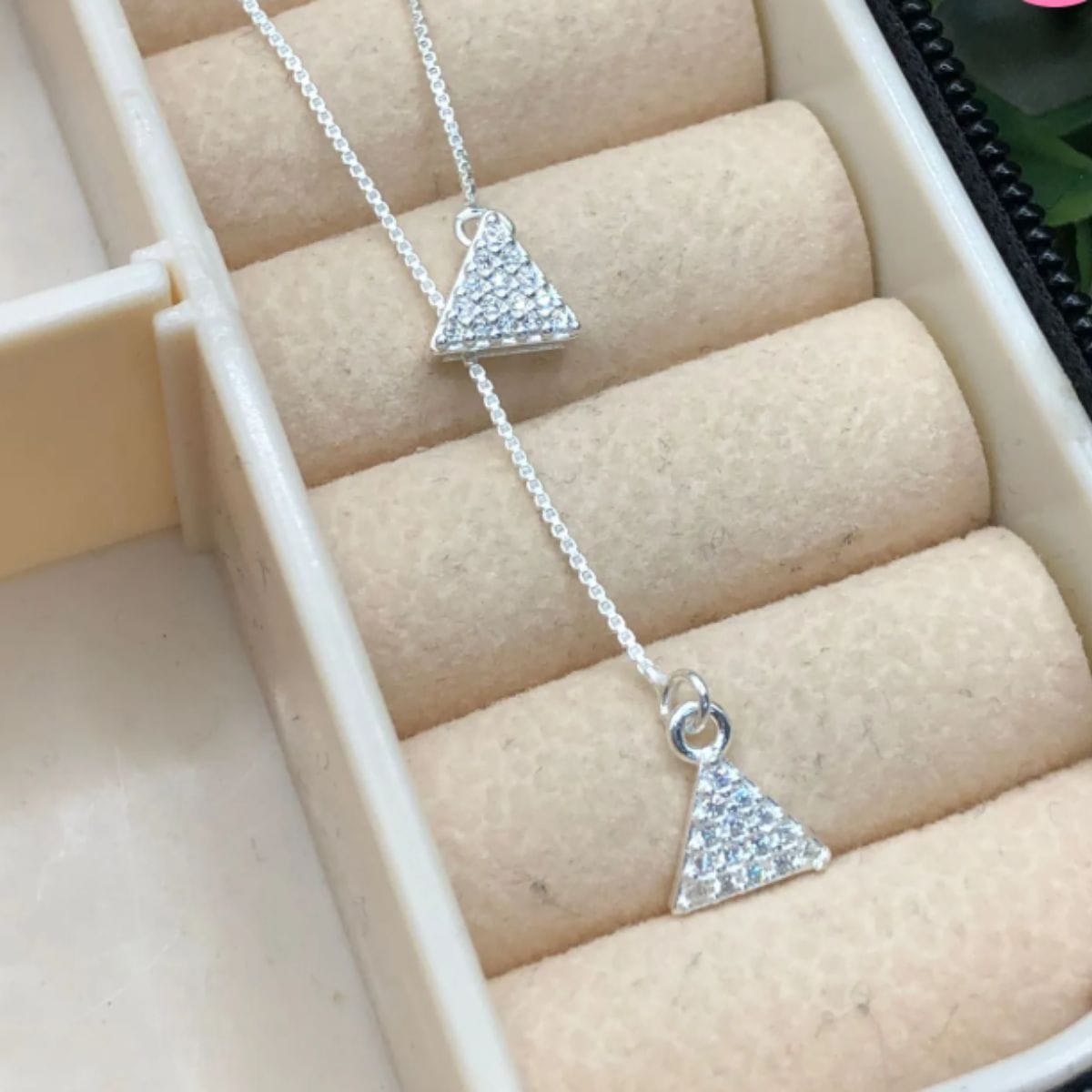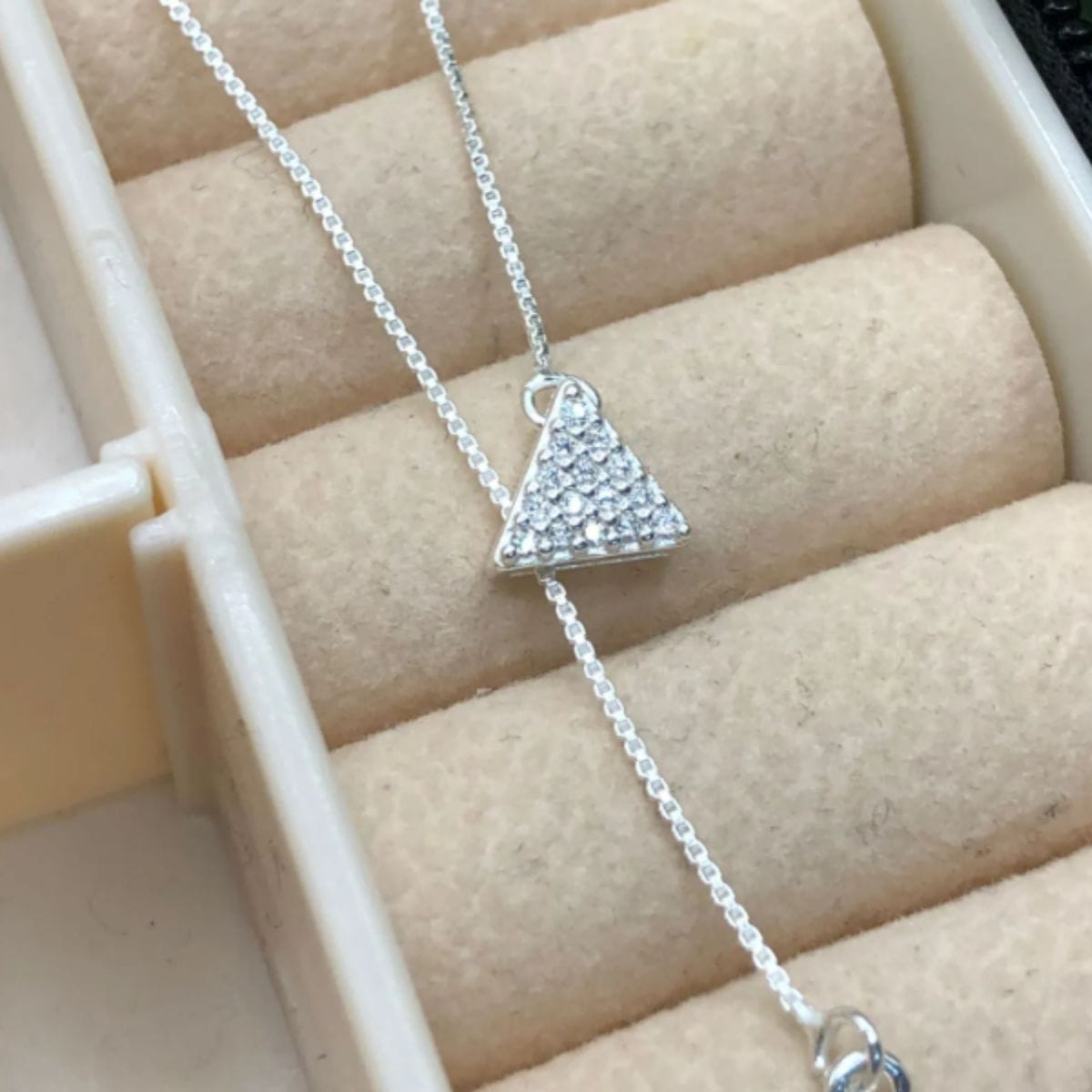A gravatinha de prata 925 com triângulo cravejado é uma joia moderna e delicada que combina perfeitamente geometria e brilho. Seu design minimalista em formato triangular transmite elegância e contemporaneidade, enquanto os detalhes cravejados adicionam um toque sofisticado e luminoso à peça. Versátil e estilosa, é ideal para compor looks do dia a dia ou ocasiões especiais, valorizando o colo com sutileza e charme.