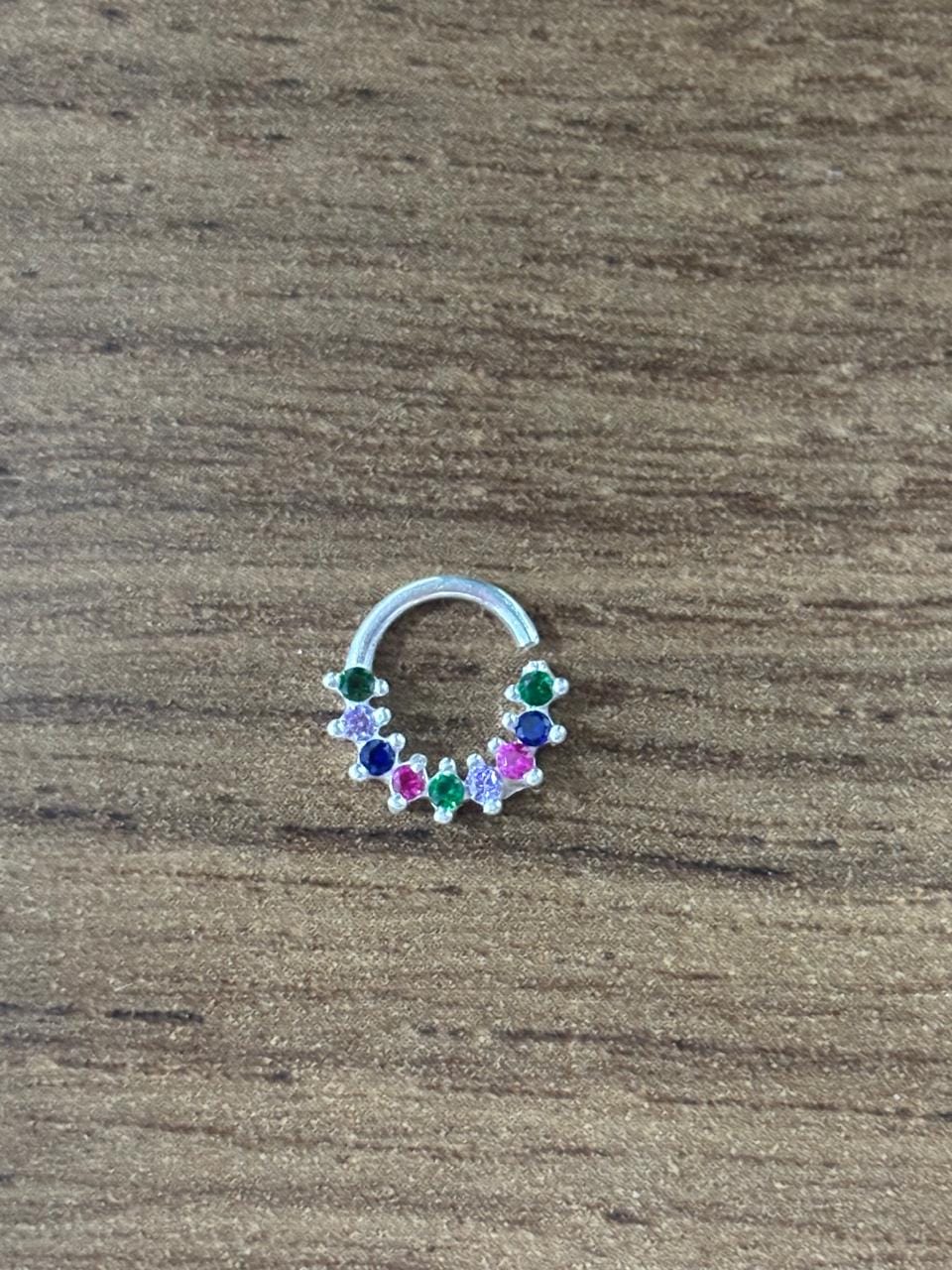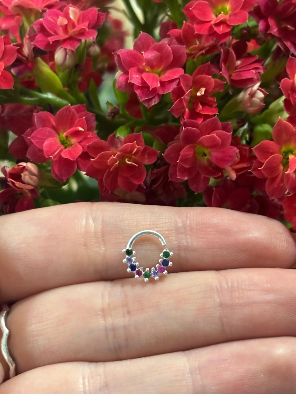 ste piercing ARGOLINHA CRAVEJADA COLORIDA (DAITH) em prata 925, garantindo um toque de elegância e estilo. Feito para os amantes da moda e da expressão pessoal, este acessório é uma escolha versátil para qualquer ocasião.