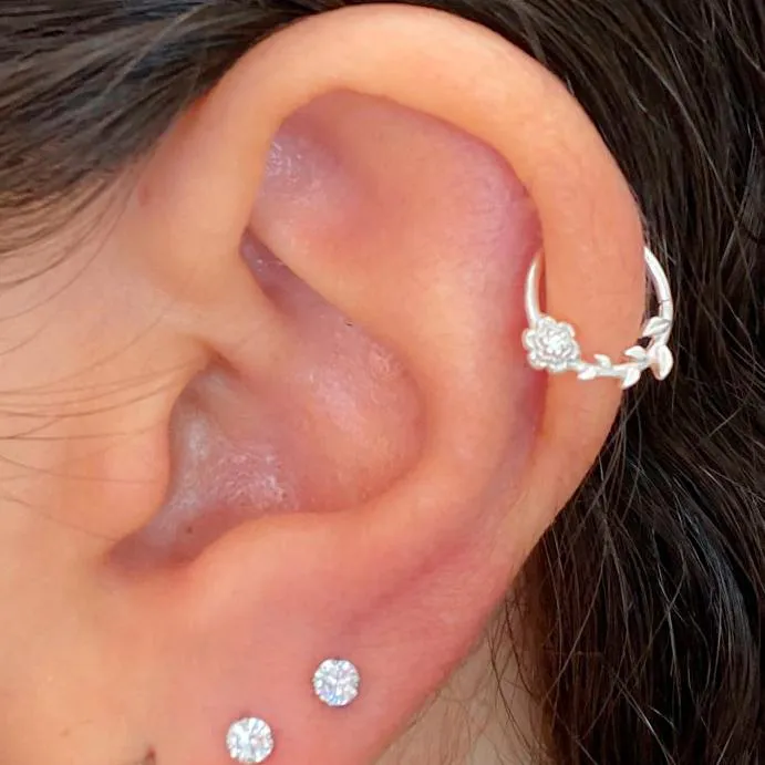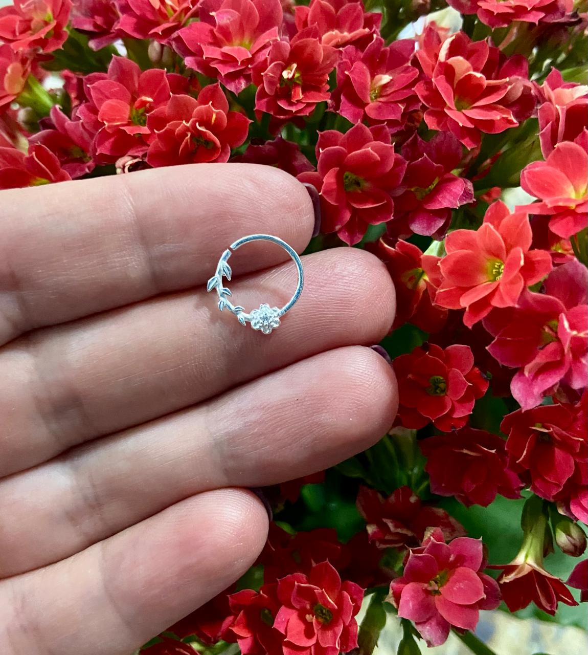Este piercing argolinha raminho e flor em prata 925, garantindo um toque de elegância e estilo. Feito para os amantes da moda e da expressão pessoal, este acessório é uma escolha versátil para qualquer ocasião.