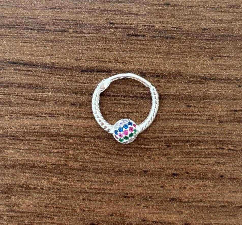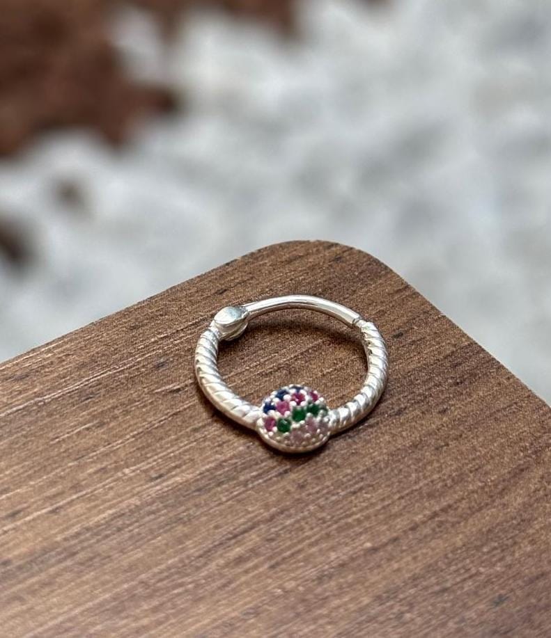 Piercing de furo Argolinha com esfera colorida Prata 925