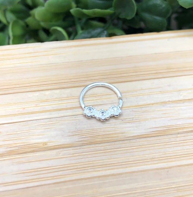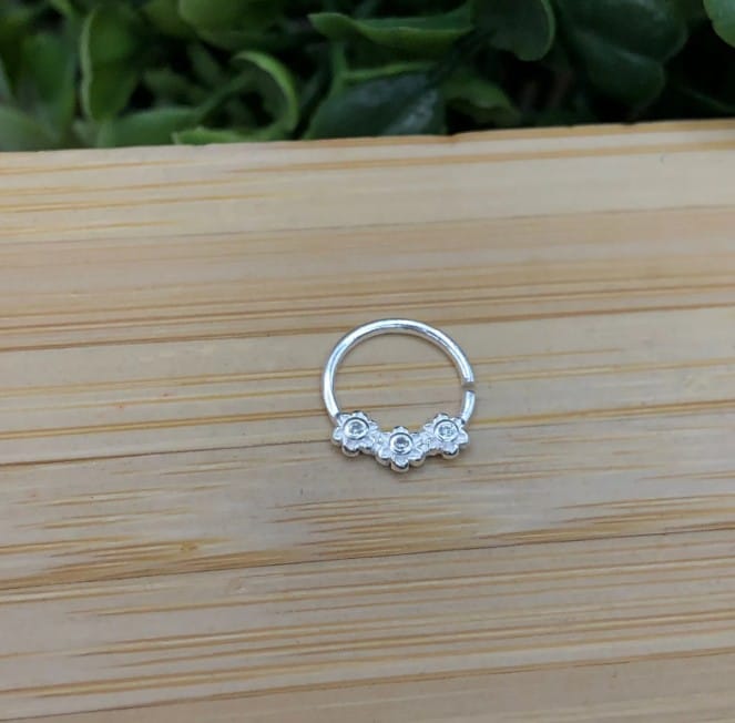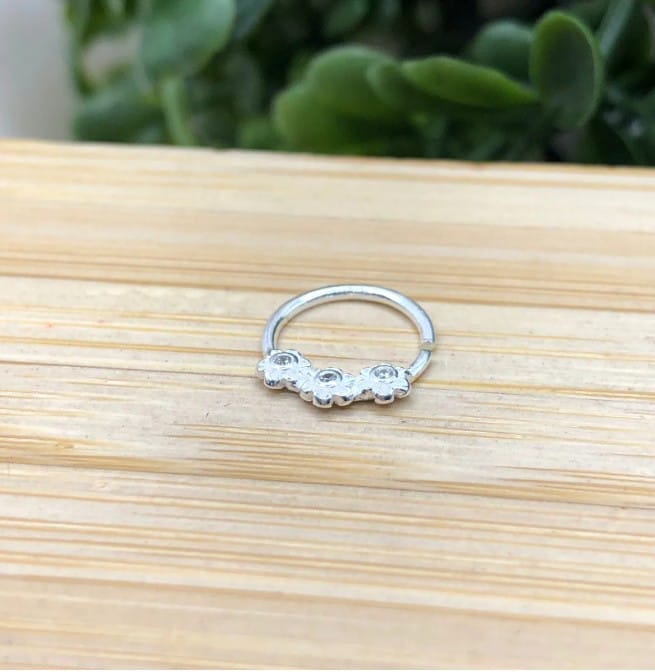 Piercing de prata 925 argola com 3 mini flores zirconia para septo