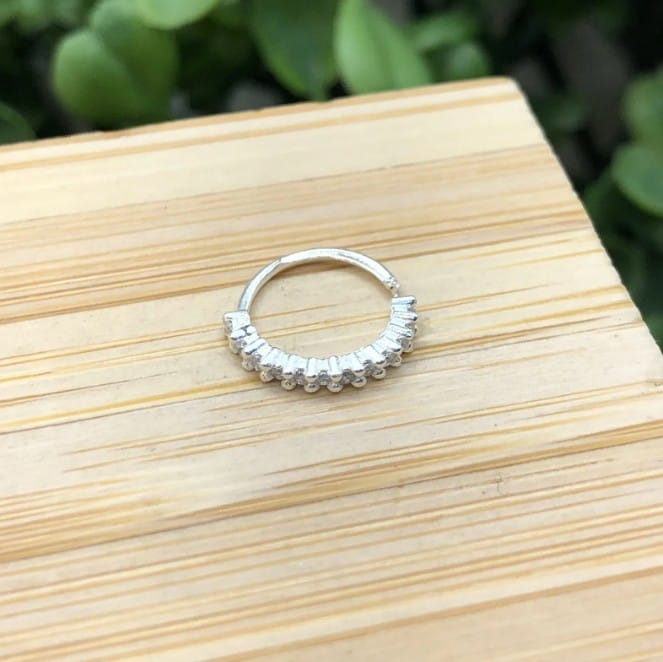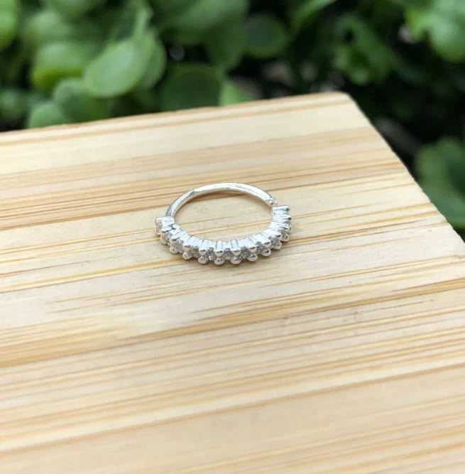 Este piercing furo septo argola cravejada em prata 925, garantindo um toque de elegância e estilo. Feito para os amantes da moda e da expressão pessoal, este acessório é uma escolha versátil para qualquer ocasião.