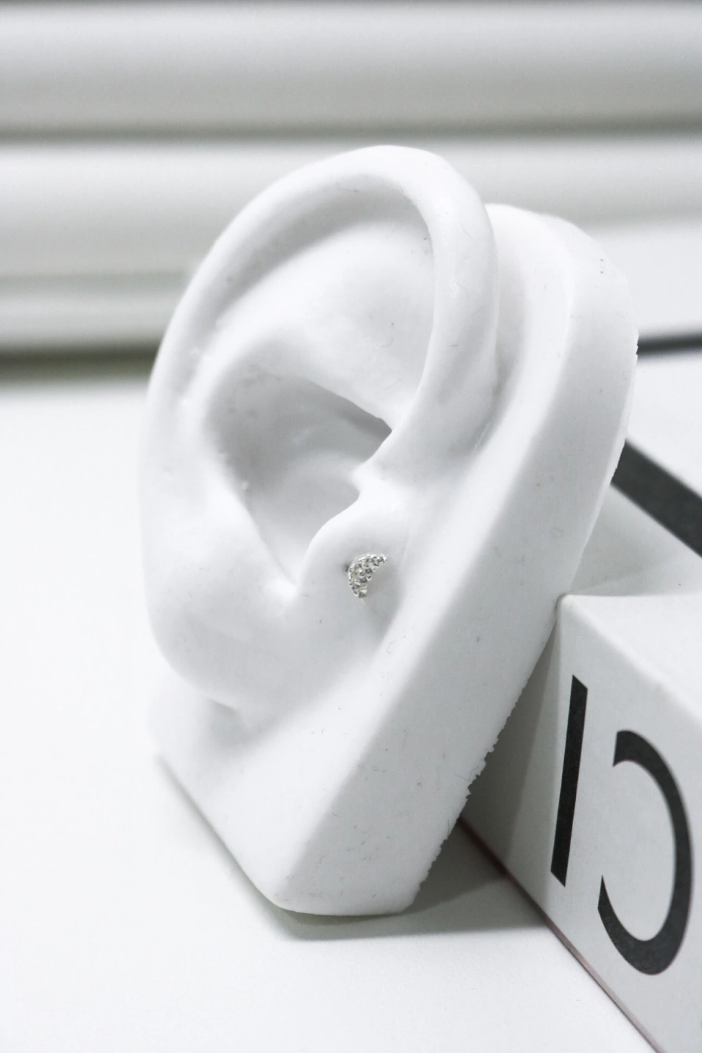 Descubra o charme do nosso Piercing de Prata Trágus Lua Cravejada, com um acabamento sofisticado cravejado em zircônia. Este acessório é a escolha perfeita para quem deseja um look moderno e cheio de estilo.