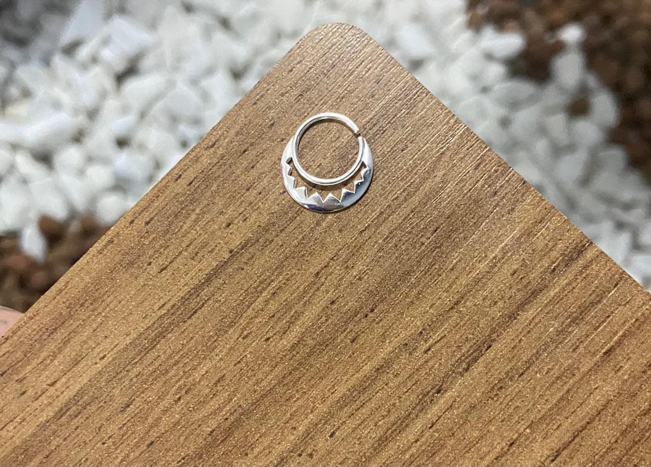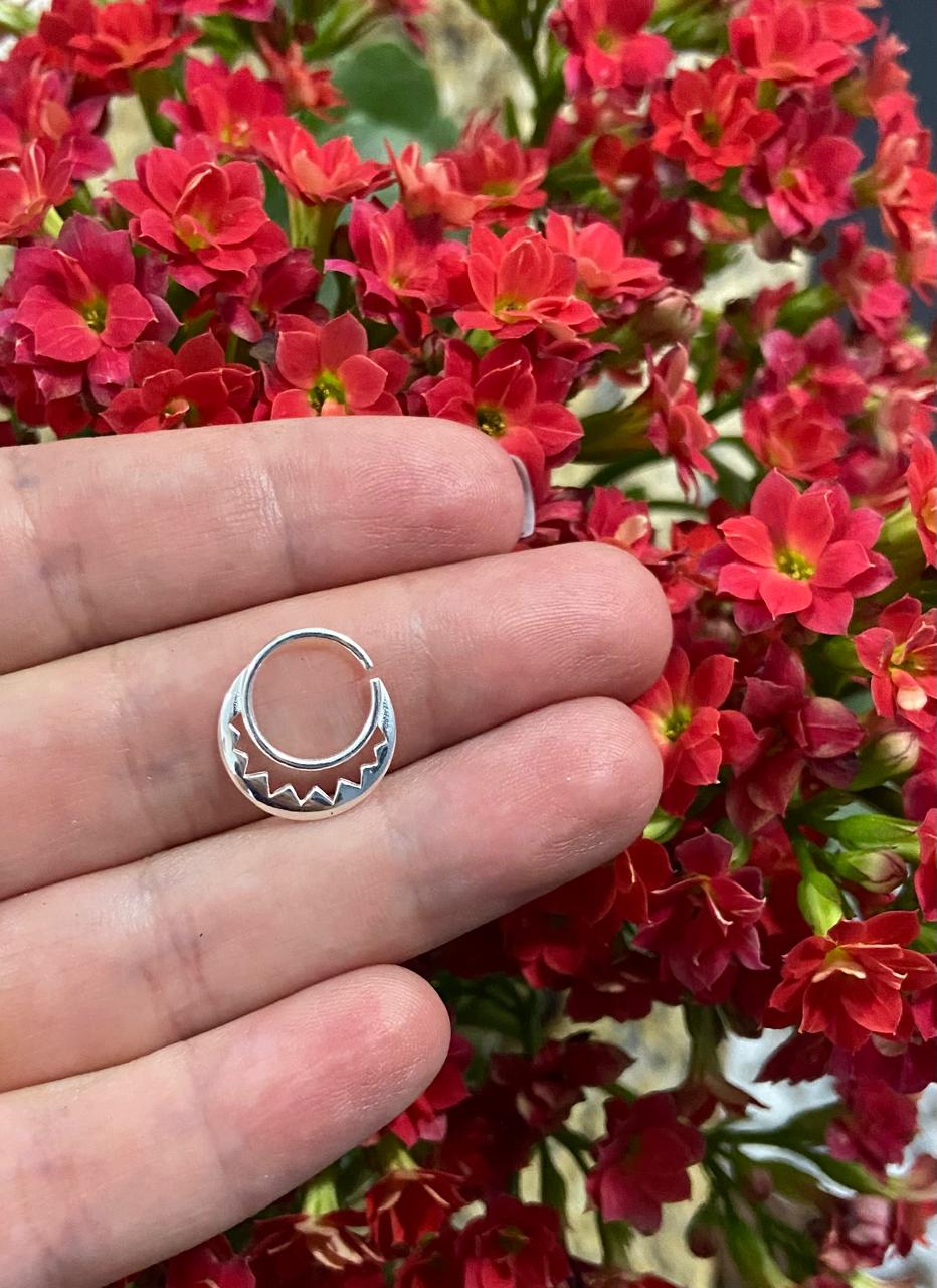 Este piercing septo meia lua em prata 925, garantindo um toque de elegância e estilo. Feito para os amantes da moda e da expressão pessoal, este acessório é uma escolha versátil para qualquer ocasião.