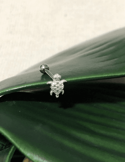 Piercing de tartaruga cravejado de haste para tragus, flat ou helix