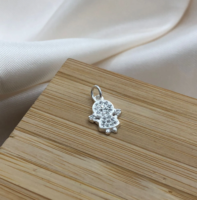 Eleve seu estilo com o Pingente Menino ou Menina Cravejada em Prata 925. Feito com detalhes finamente esculpidos, captura a essência do design icônico em uma peça compacta. A prata de alta qualidade adiciona sofisticação e elegância.