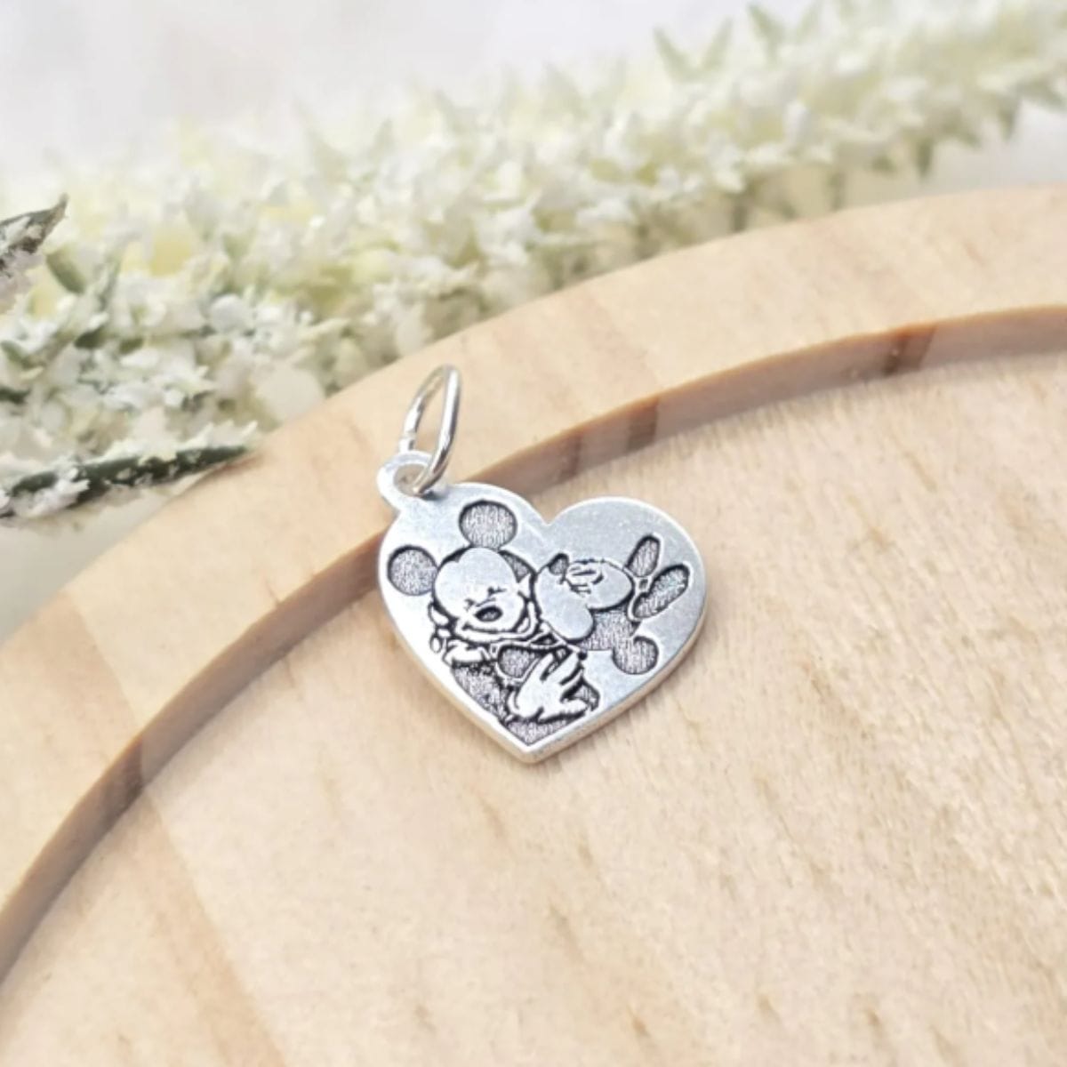 Um pingente delicado e cheio de carinho, com design inspirado no Mickey e Minnie formando um coração, que simboliza amor, união e afeto. O formato harmonioso transmite leveza e romantismo, criando uma joia encantadora e cheia de significado. Perfeito para quem gosta de acessórios delicados com um toque especial e afetivo.