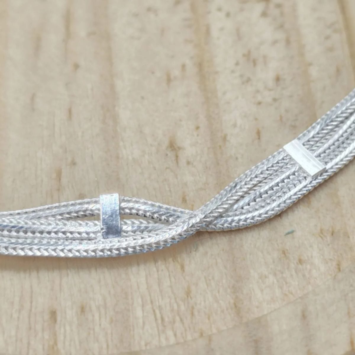 Pulseira de prata 925 3 fios trançada com detalhe liso