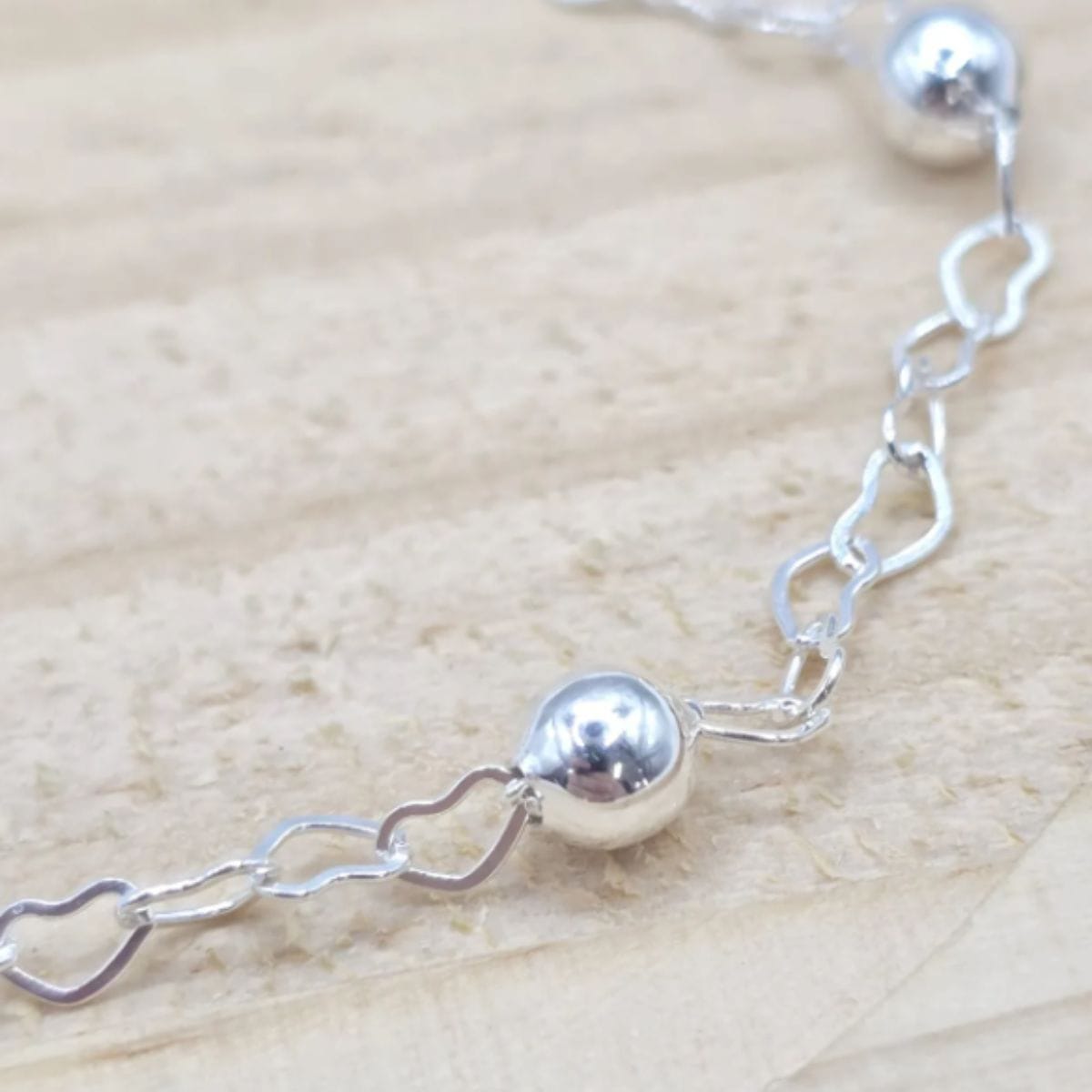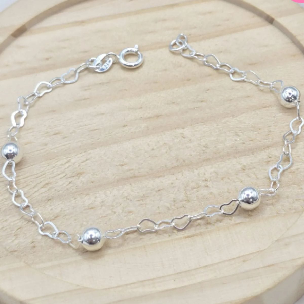 Pulseira de prata 925 5 bolas + elo coração 5mm 2,5g