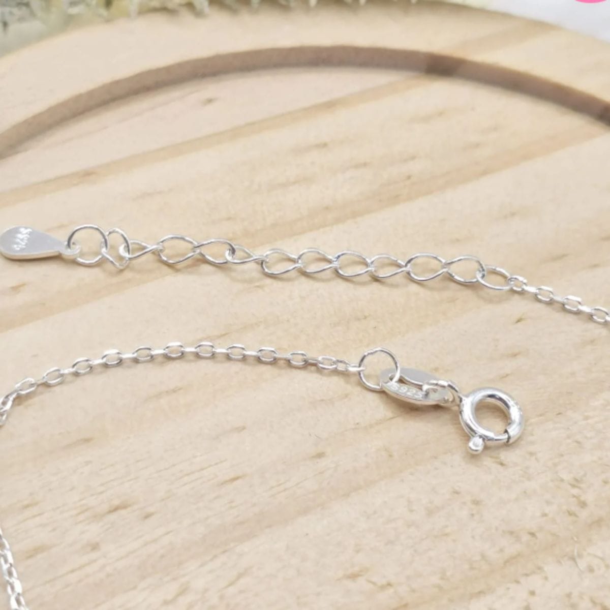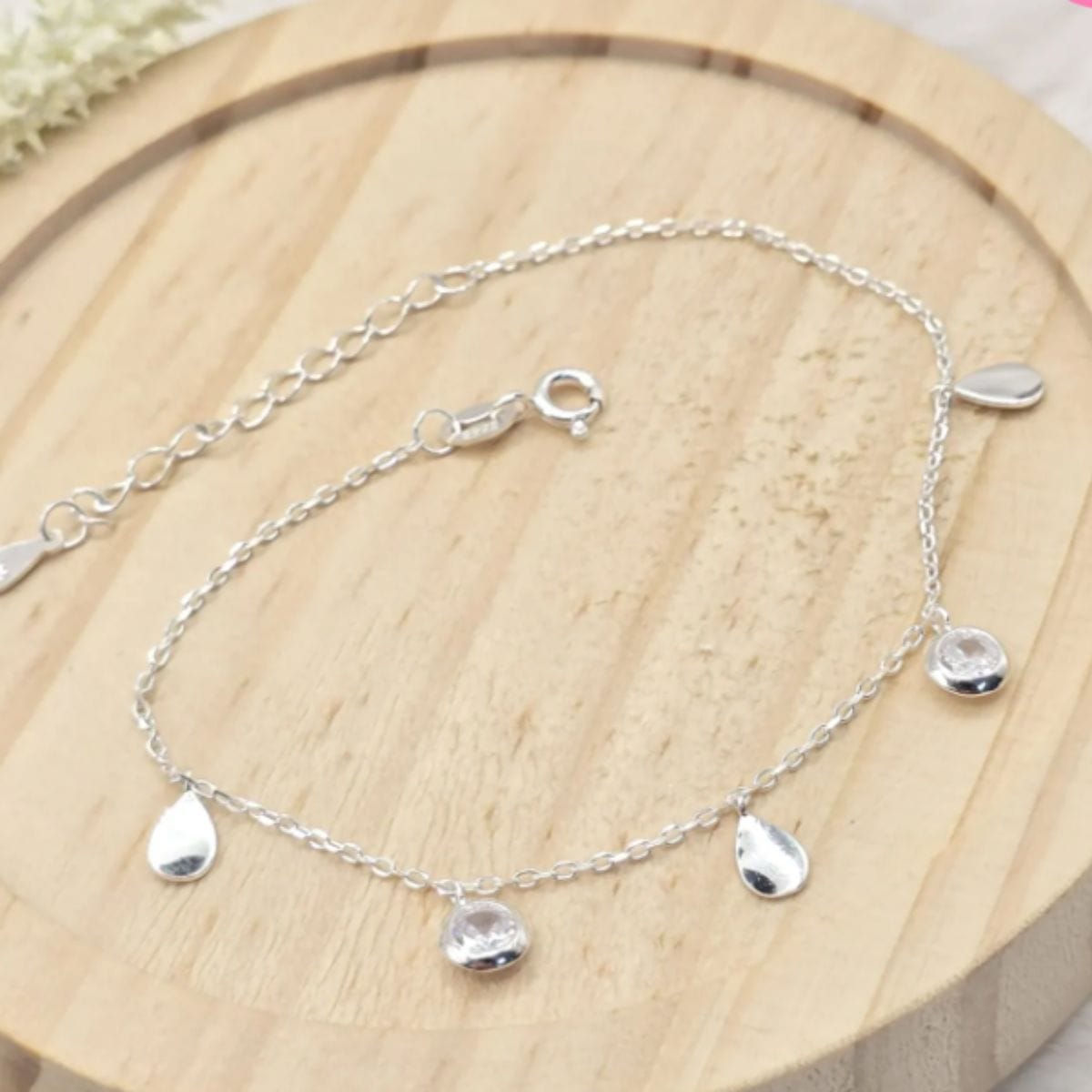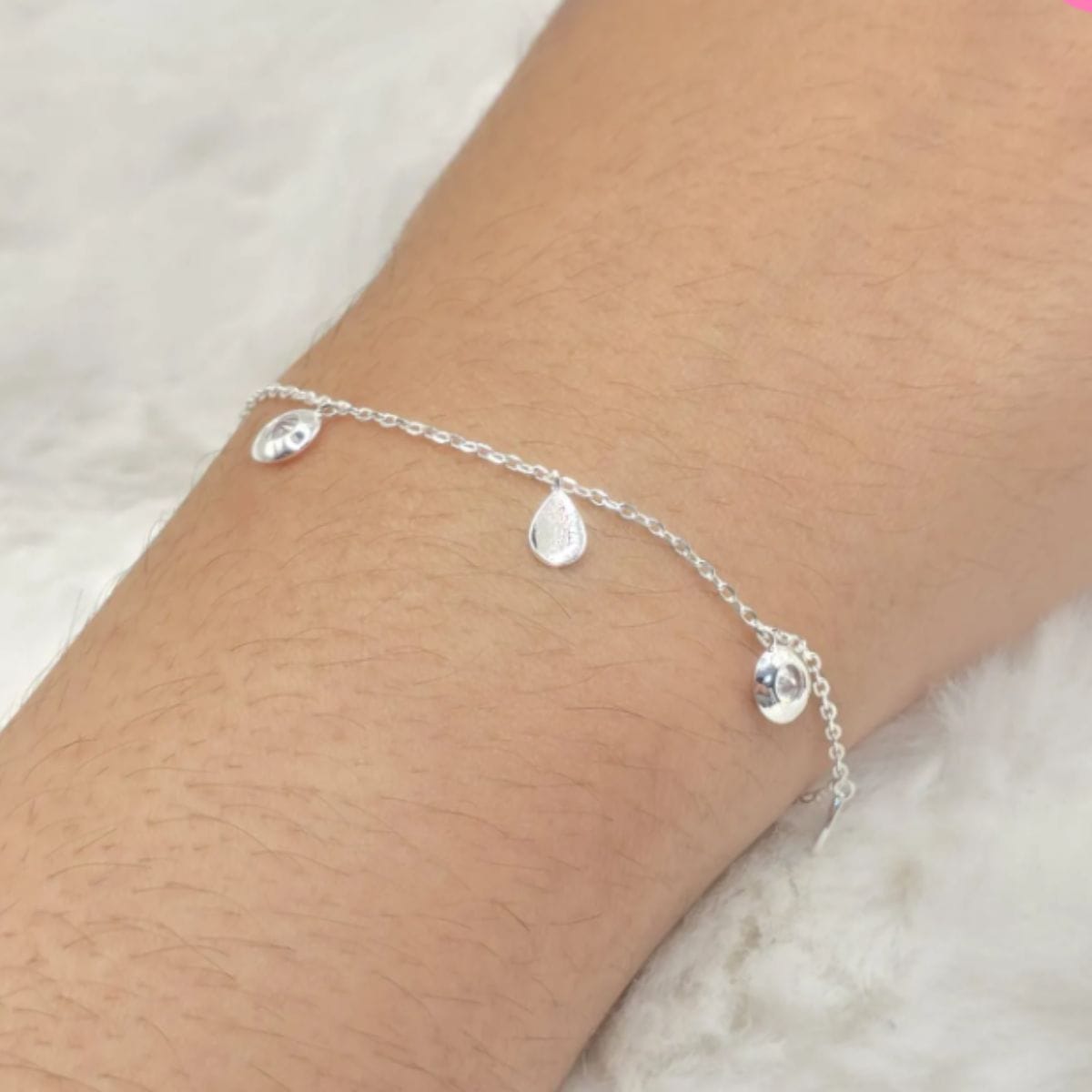 Pulseira de prata 925 com pingente ponto de luz e gota chapinha pendurados