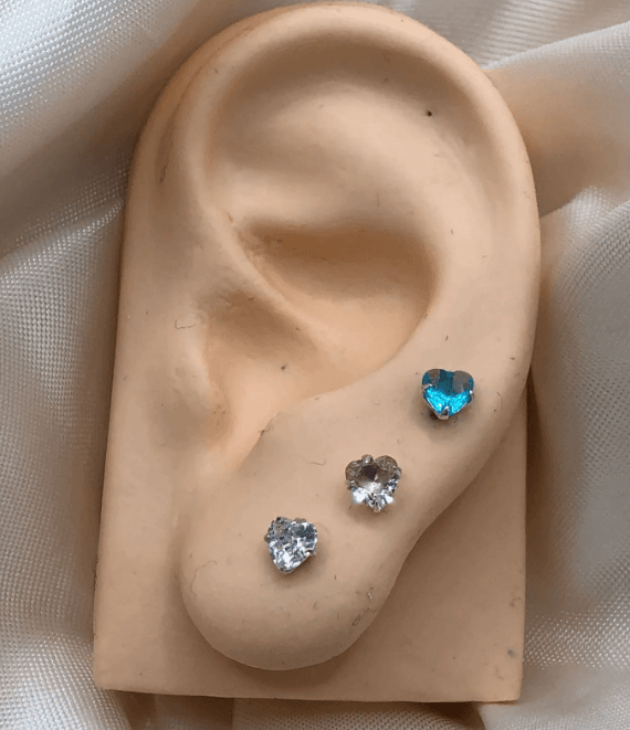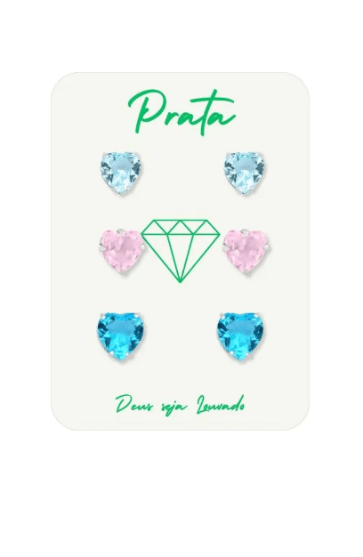 Trio de Brincos de Prata 925 Coração Zircônia 5X5mm. Modelo fixo com pedra de zircônia Coração, presa por quatro garras. Confeccionados em Prata Legítima.