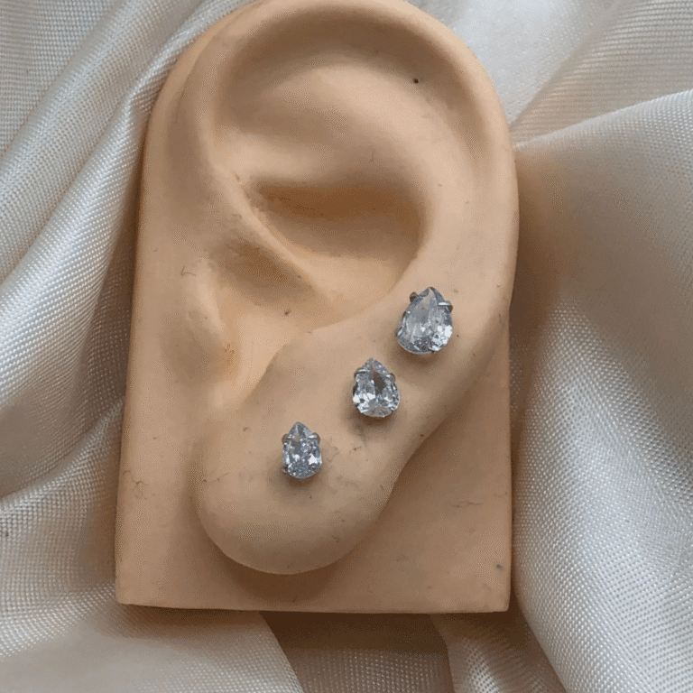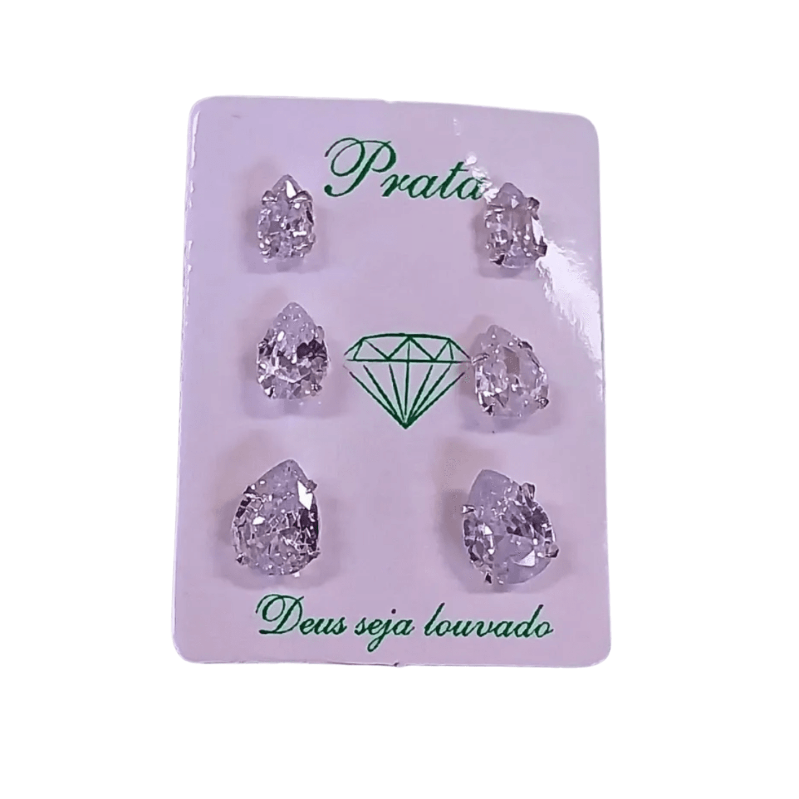 Trio de Brincos de Prata 925 pedra de gotas brancas Zircônia 4x6mm, 5x7mm e 6x8mm. Modelo fixo com pedra de zircônia gotas, presa por quatro garras. Confeccionados em Prata Legítima.