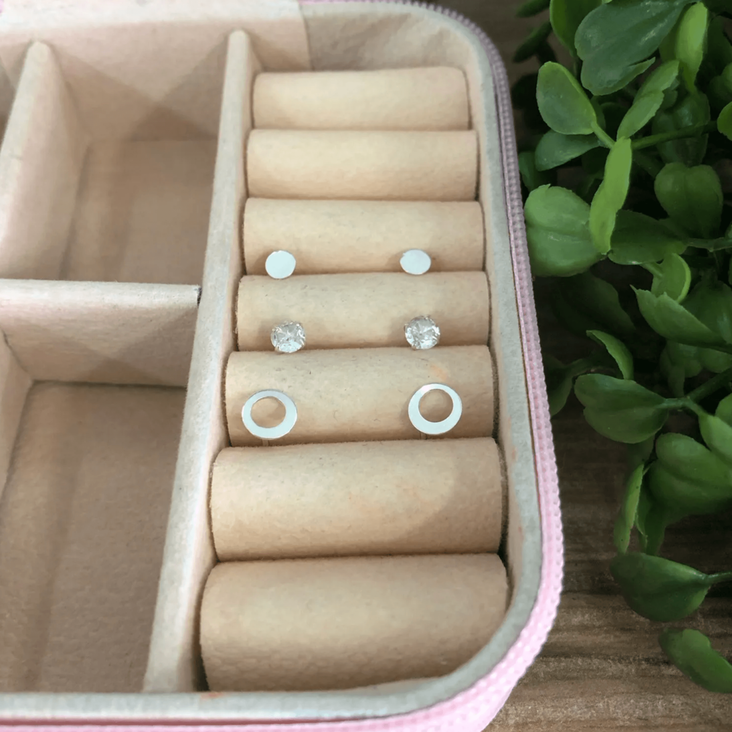 Trio de Brincos de Prata 925, redondo chapado, redondo vazado e pedra branca redonda. Modelo fixo, confeccionados em Prata Legítima.